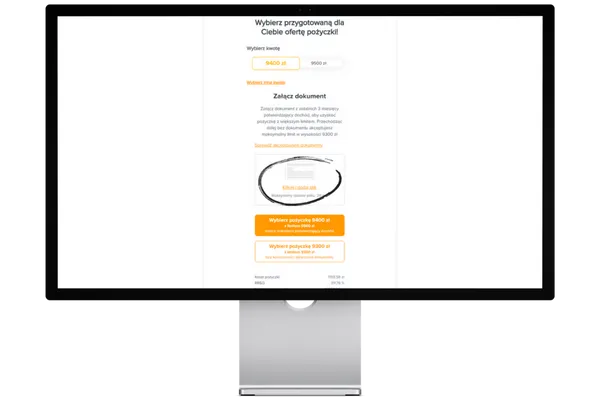 - Po dodaniu dokumentu potwierdzającego Twój dochód wybierz interesującą Cię opcję pożyczki i przejdź do dalszej części procesu.